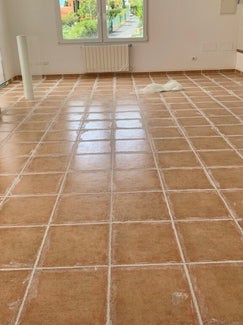 In de eerste foto zien we een keramische terracotta vloer die misschien wel charmant en rustiek was, maar niet voldeed aan de gewenste stijl en uitstraling. Maar kijk nu eens naar de tweede foto! Dankzij onze expertise en de veelzijdigheid van MORTEX® beton cire is de vloer getransformeerd in een zee van stijl en elegantie.